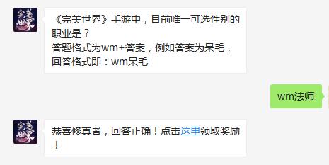 - 《完美世界》手游中,目前唯一可选性别的职业是?