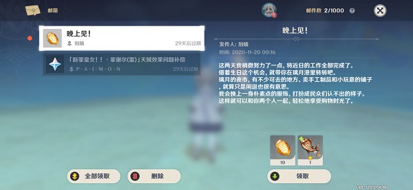 - 原神刻晴晚上见邮件怎么领